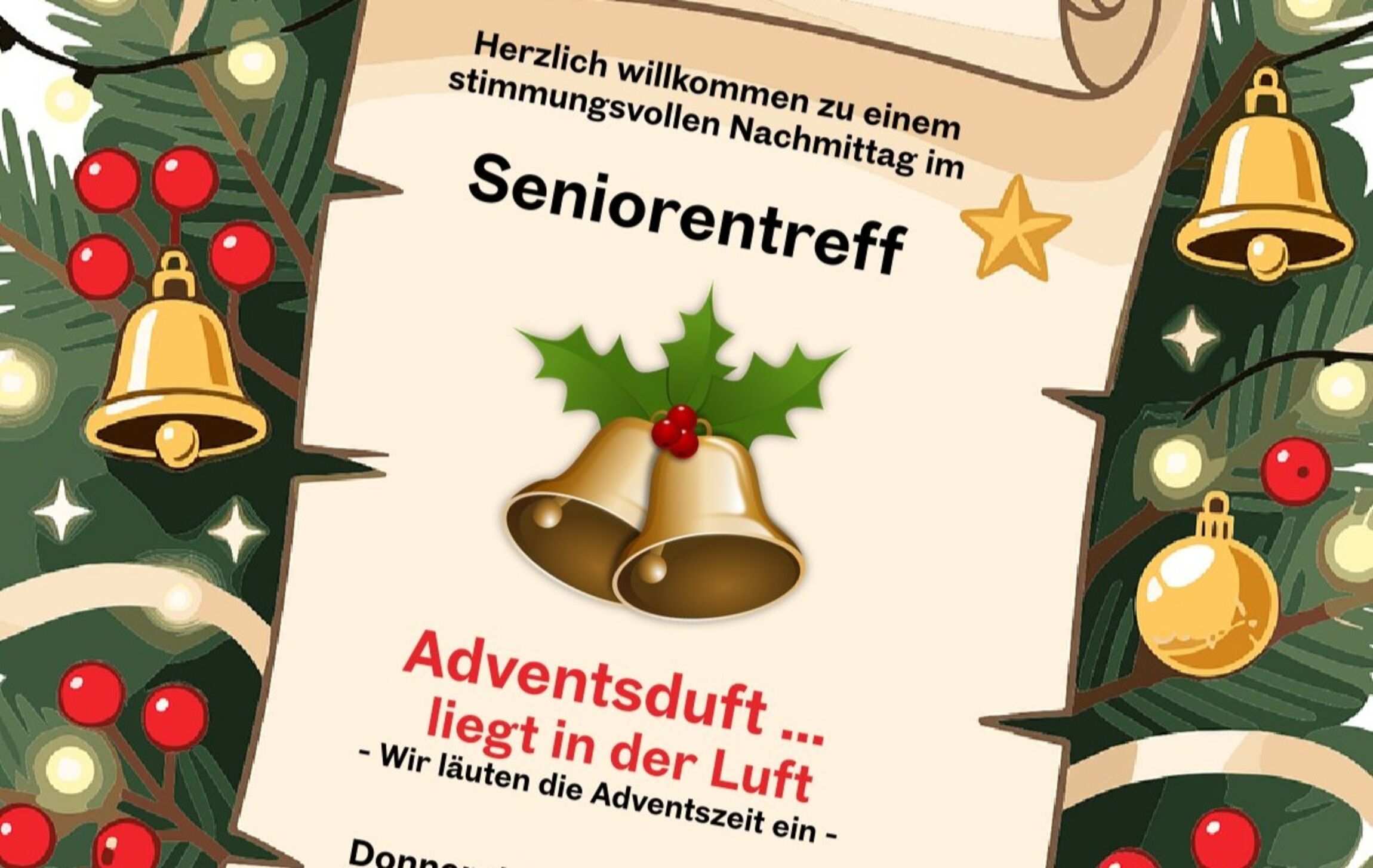 Donnerstag, 27. November, 15:00 bis 16:30 Uhr. Kaffee, Kuchen und Programm. Wir läuten die Adventszeit ein: Herzlich willkommen zum gemütlichen Beisammensein mit Musik, Liedern, Geschichten, Bräuchen und Düften zur Adventszeit. Bringen Sie gerne ein für Sie wichtiges Erinnerungsstück mit!
