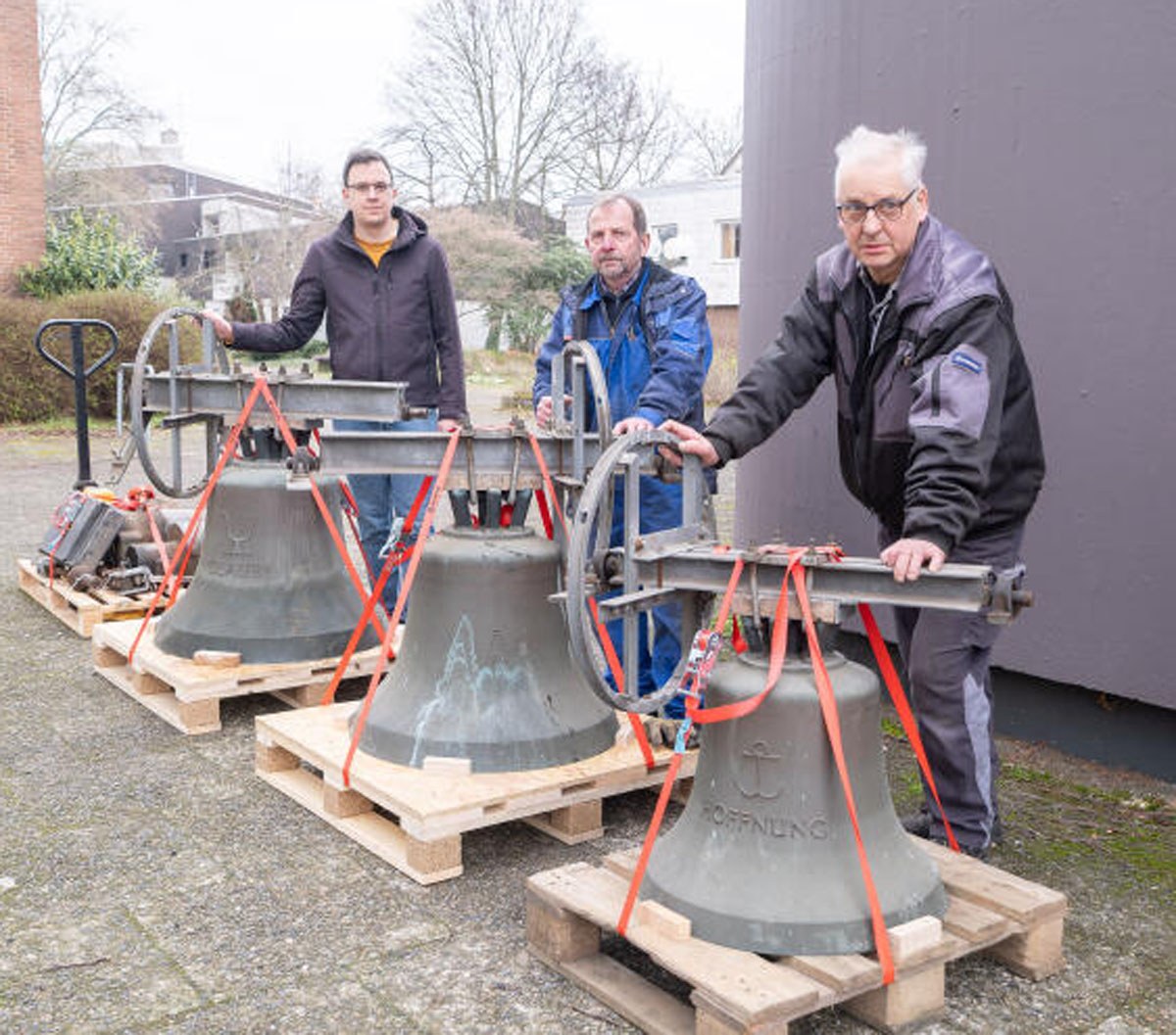 Was das vertraute Glockengeläut angeht, ist es still geworden in der Plüschowstraße. Die (lediglich) zwei Glocken der Lister Matthäuskirche sind dort nur noch zurückhaltend zu vernehmen, wenn der Wind gut steht. Und ehrlich gesagt kommen sie nicht an den schönen Dreiklang des Heilig-Geist-Geläuts heran. Im Dezember 2022 hatten die Bronzegüsse mit Namen "Glaube", "Hoffnung" und "Liebe" aus dem Jahr 1976 das letzte Mal zum Gottesdienst gerufen. Die Menschen der Heilig-Geist-Gemeinde selbst haben längst neue Heimat in ihren beiden Muttergemeinden Vahrenwald und bei uns in der List gefunden. Immer wieder hören wir, dass es den Menschen gut hier geht. Und dennoch: Als am 13. März 2024 die Glocken aus dem modernen Kirchturm geholt wurden, versetzte das manchem einen Stich ins Herz. Hatten sie nicht über 46 Jahre treu zum Gottesdienst gerufen? Dass die Kirche nun vom Knabenchor Hanover genutzt wird, hat viele gefreut - eine gute Nachnutzung! Aber der Abtransport der Glocken...!? Was passierte mit den wertvollen Bronzegüssen? Ist es nicht gerade heute ein falsches Signal, Glocken verstummen zu lassen?