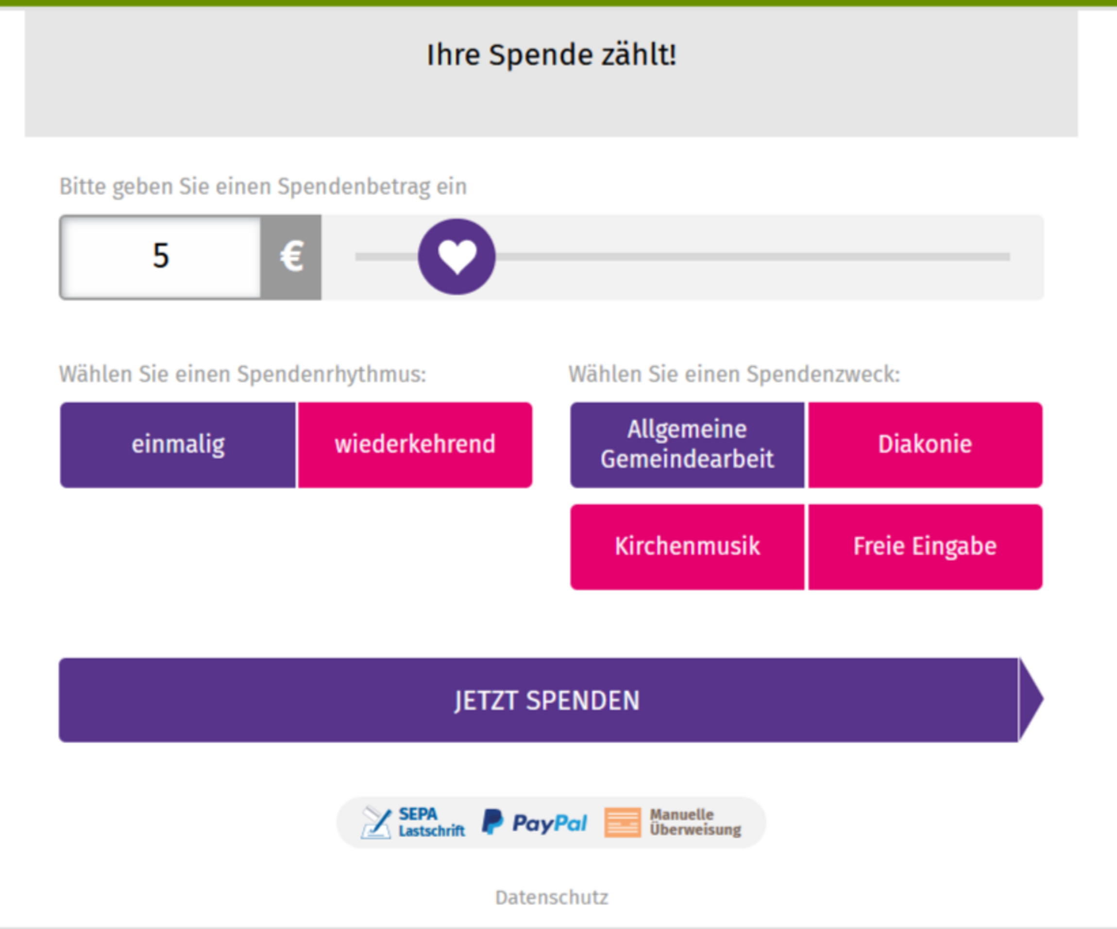 Ab sofort können Sie unkompliziert, schnell und sicher der Lister Kirchengemeinde online eine Spende zukommen lassen. Sie können derzeit zwischen drei vorgegebenen Zweckbestimmungen wählen. Eine Spendenbescheinigung erhalten Sie auf Wunsch umgehend.