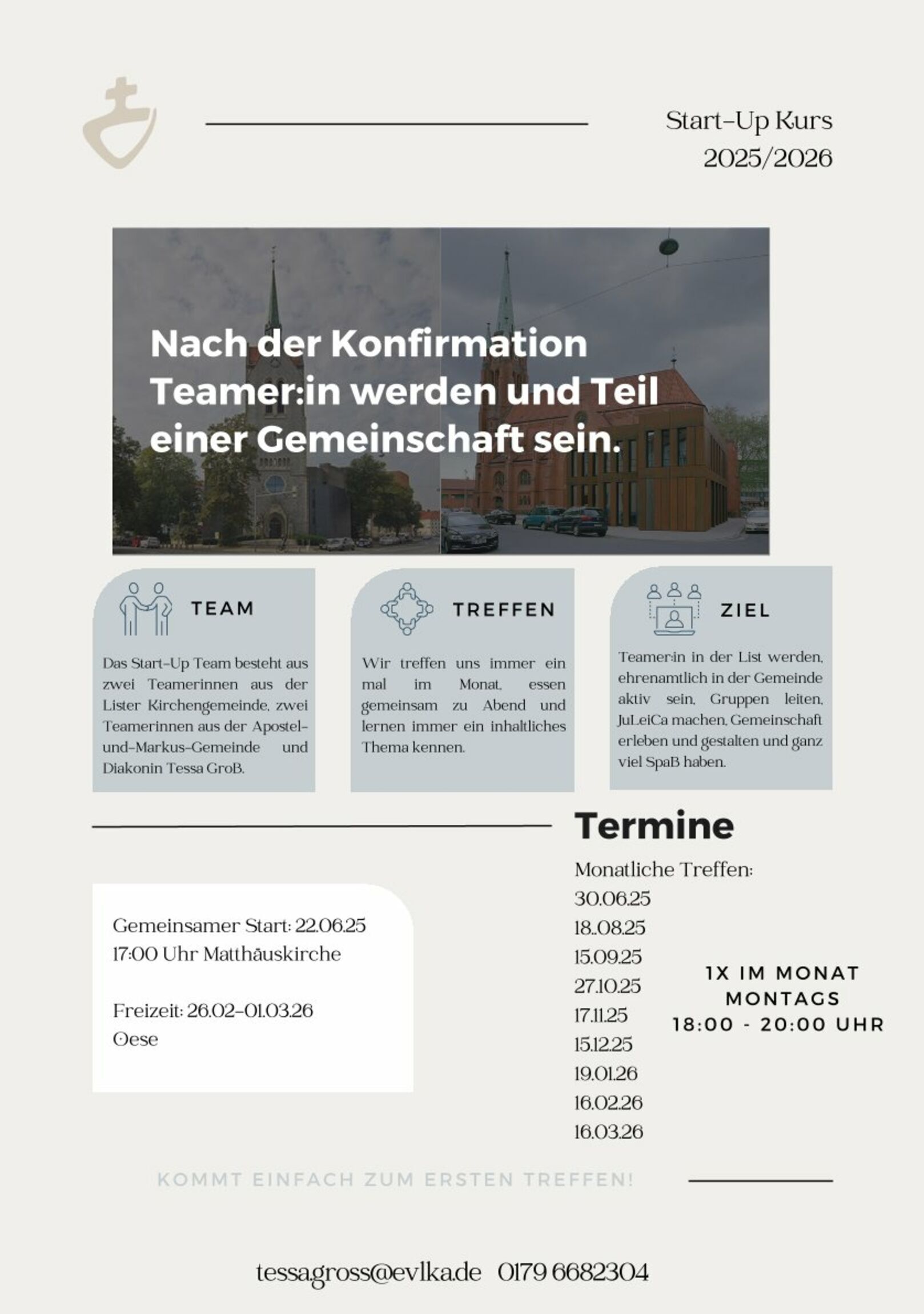 Mit einem Jugendgottesdienst beginnt am 22. Juni 2025 der neue StartUp!-Kurs für Konfirmierte, die gern Teamer*innen werden wollen. Treffen für alle Interessierten ist um 17 Uhr an der Matthäuskirche (Wöhlerstraße 13) - gemeinsam geht es dann nach Linden, wo um 18 Uhr in der St. Martinskirche der Auftakt-Gottesdienst zusammen mit den Jugendlichen aus der Gesamtkirchengemeinde LiLi (Linden-Limmer) stattfindet.