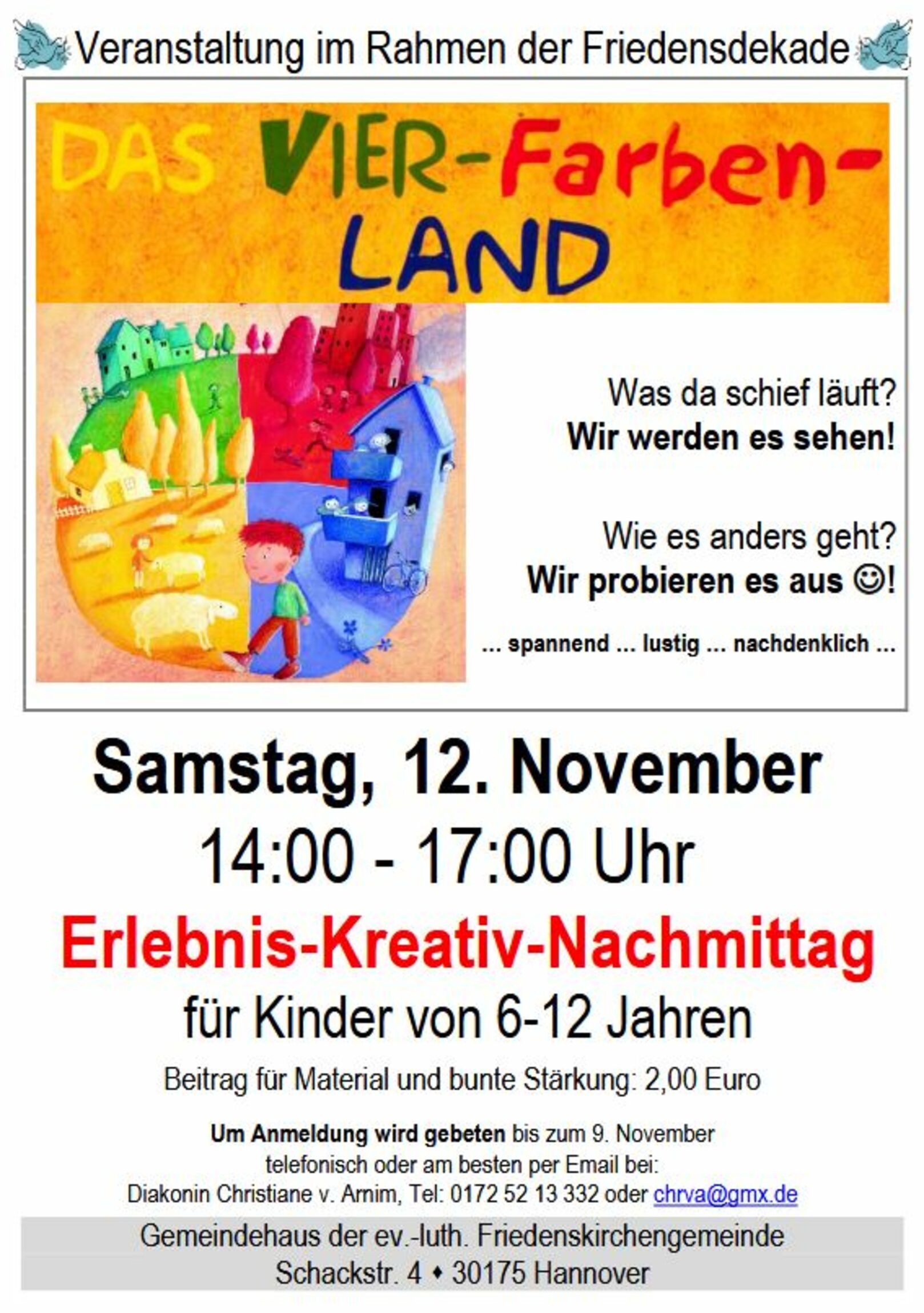 Kinder-Erlebnis-Tag "Vier-Farben-Land" am 12.11. in der Friedenskirche